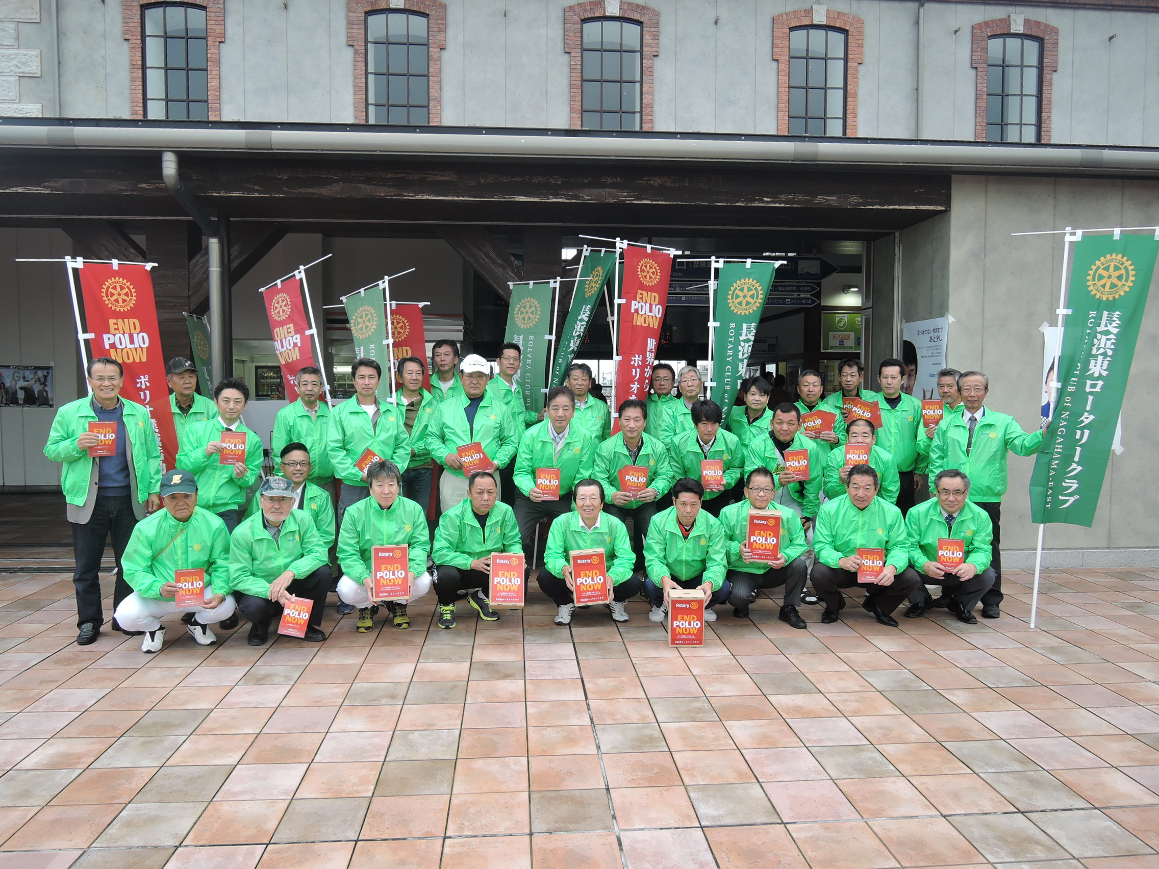 1027日(土)、長浜駅前ペデストリアンデッキ(長浜駅とえきまちテラスをつなぐ空中歩廊)で、ポリオ撲滅のための街頭募金を行いました。