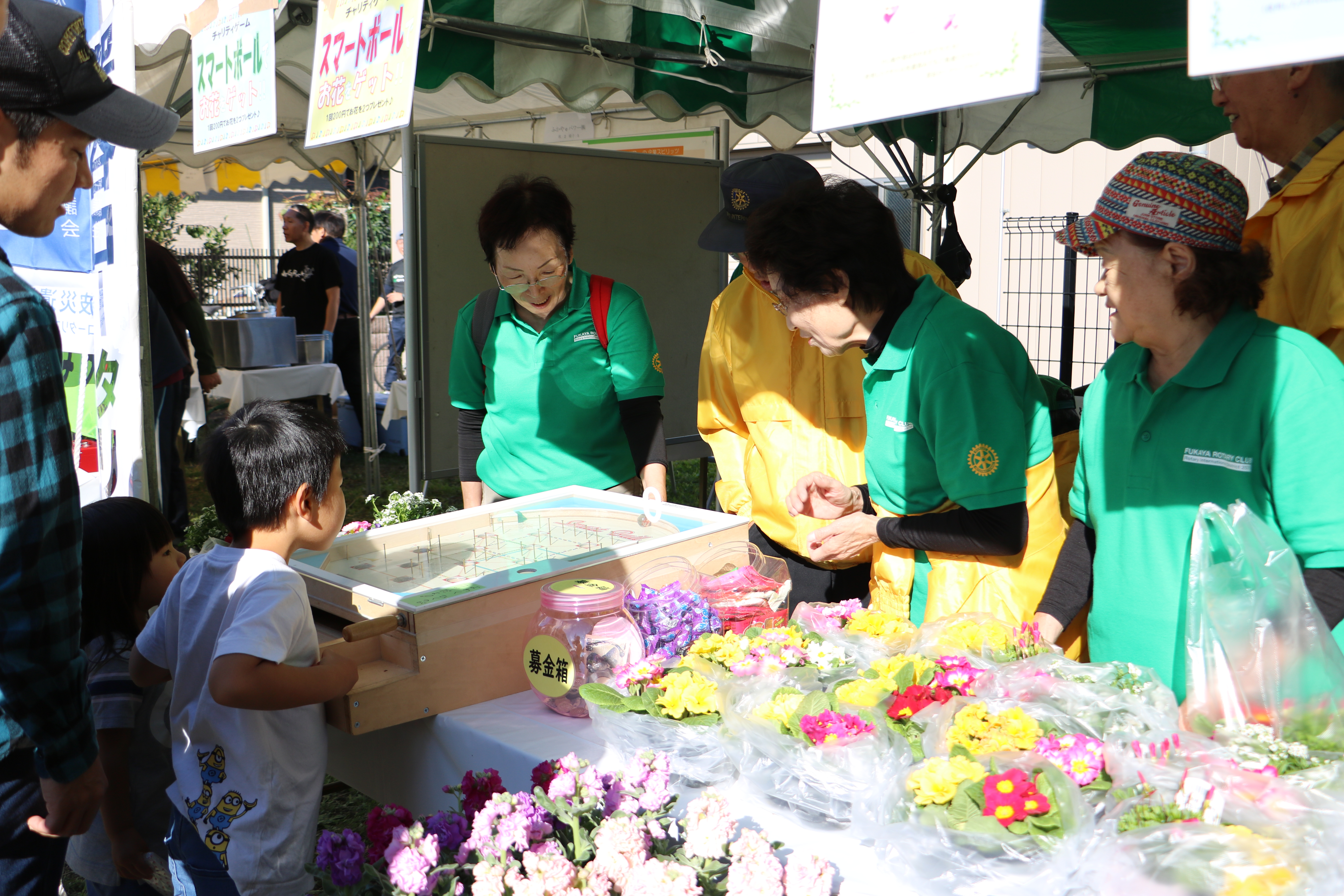 1110日(土)と11日(日)、深谷市産業祭に深谷ロータリークラブとして初めて参加。社会奉仕委員会の徳間寛子委員長を筆頭に、ポリオ撲滅の募金活動を実施しました。ロータリークラブがどうのような活動をしているのかを地域の人たちに知ってもらおうと、当日は200円の募金でスローボールのゲームを楽しんでもらい、花苗2個をプレゼントする時にポリオ等のチラシを一緒に渡しました。