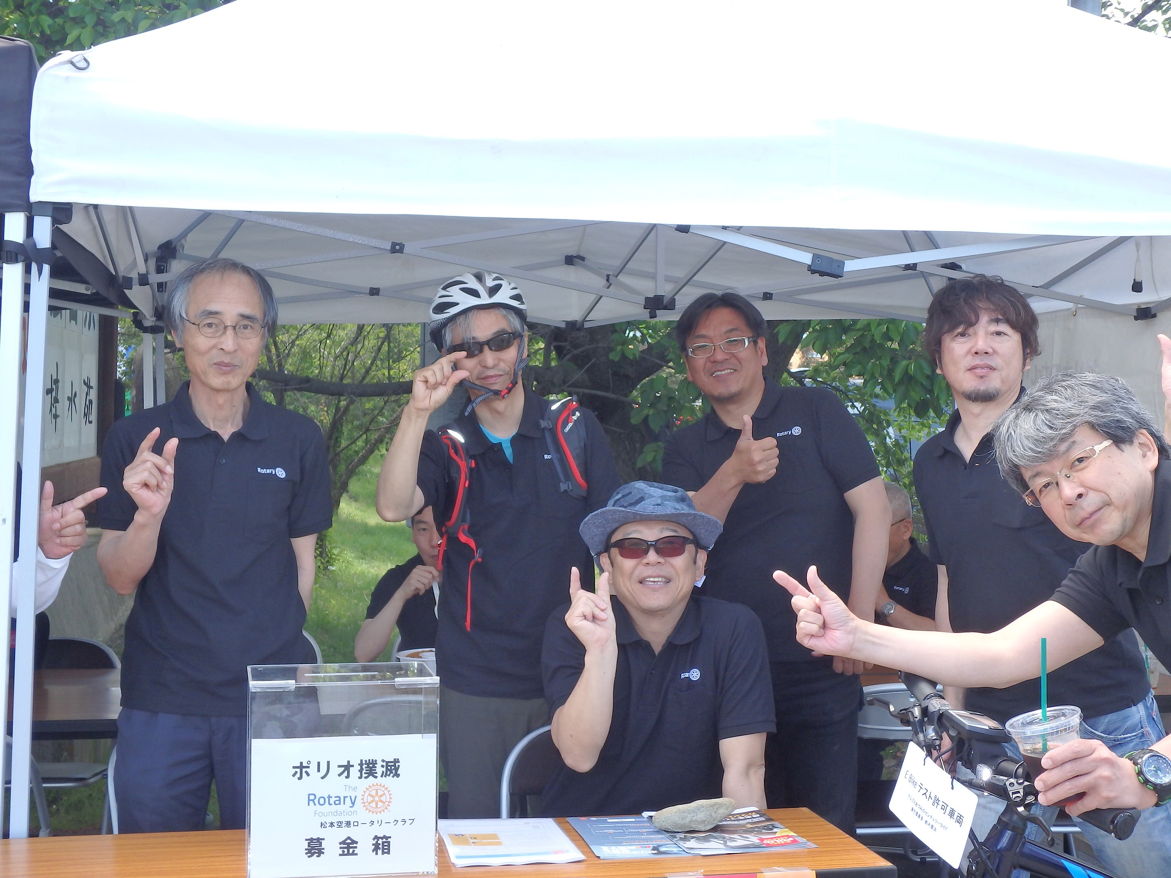 2000年シドニーオリンピックのマウンテンバイククロスカントリー日本代表で、全日本チーム監督も務めたクラブ会員、鈴木雷太さんがプロデュースする自転車ロードレース「アルプスあづみのセンチュリーライド」で、ポリオ撲滅や医療、教育への理解と協力を訴え、「チャリティーエントリー」を募りました。このレースには毎年、約4,000名が参加します。